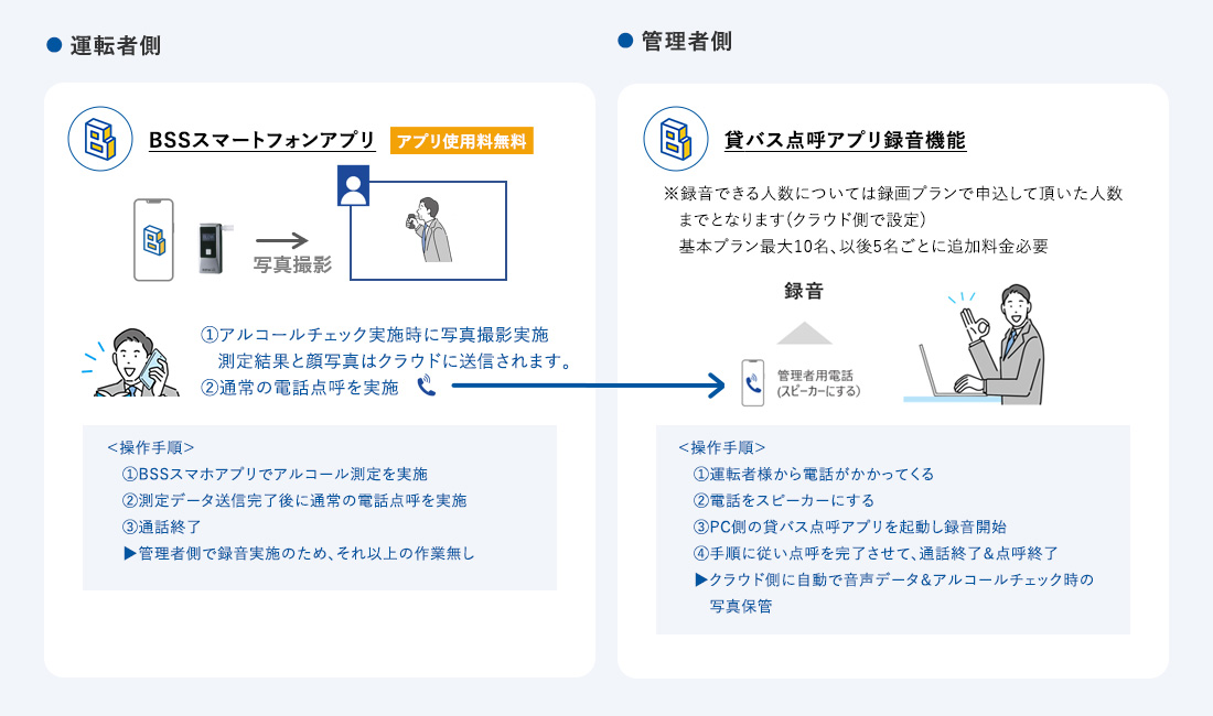 出勤、点呼、台帳管理の他に必要に応じてオプション機能を選択することが可能です。